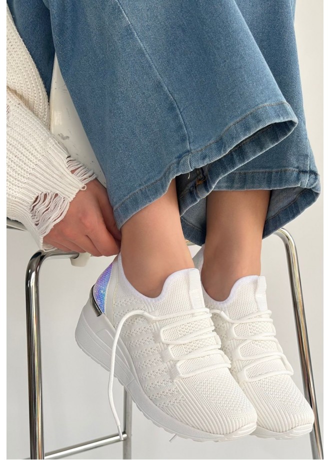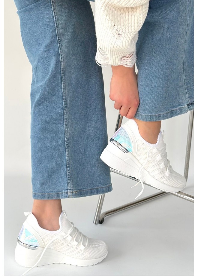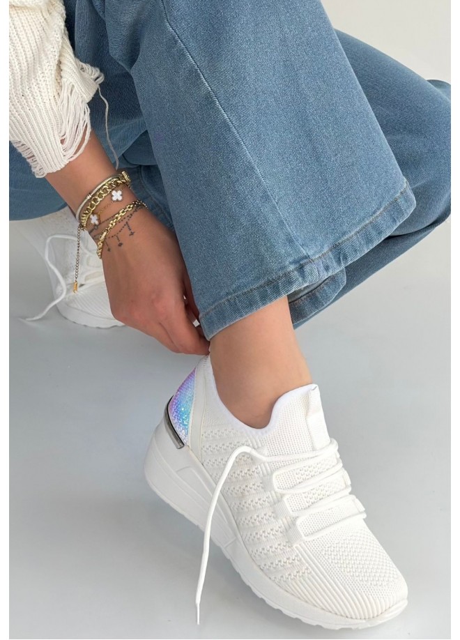 Weor Beyaz Triko Bağcıklı Spor Ayakkabı